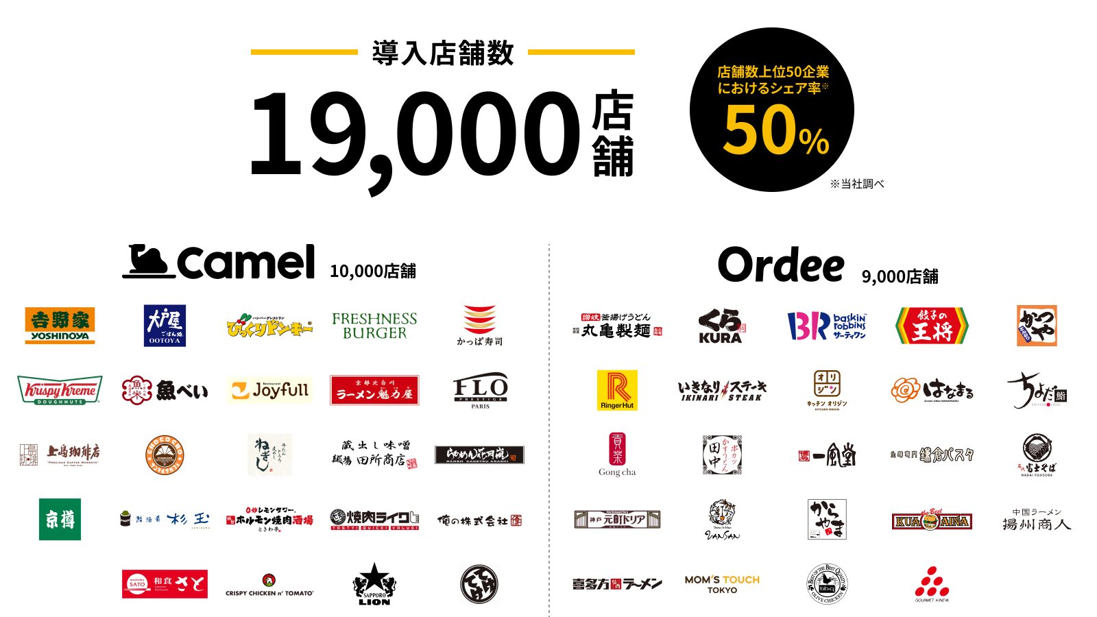 これにより大手チェーン店から個店まで、全国で計1万9000店超の飲食店にデリバリー注文一元化サービスを提供する規模となり、店舗数上位10社のチェーン企業の6社、上位50社のうちの50%超の企業(tacoms調べ)を網羅することとなった。