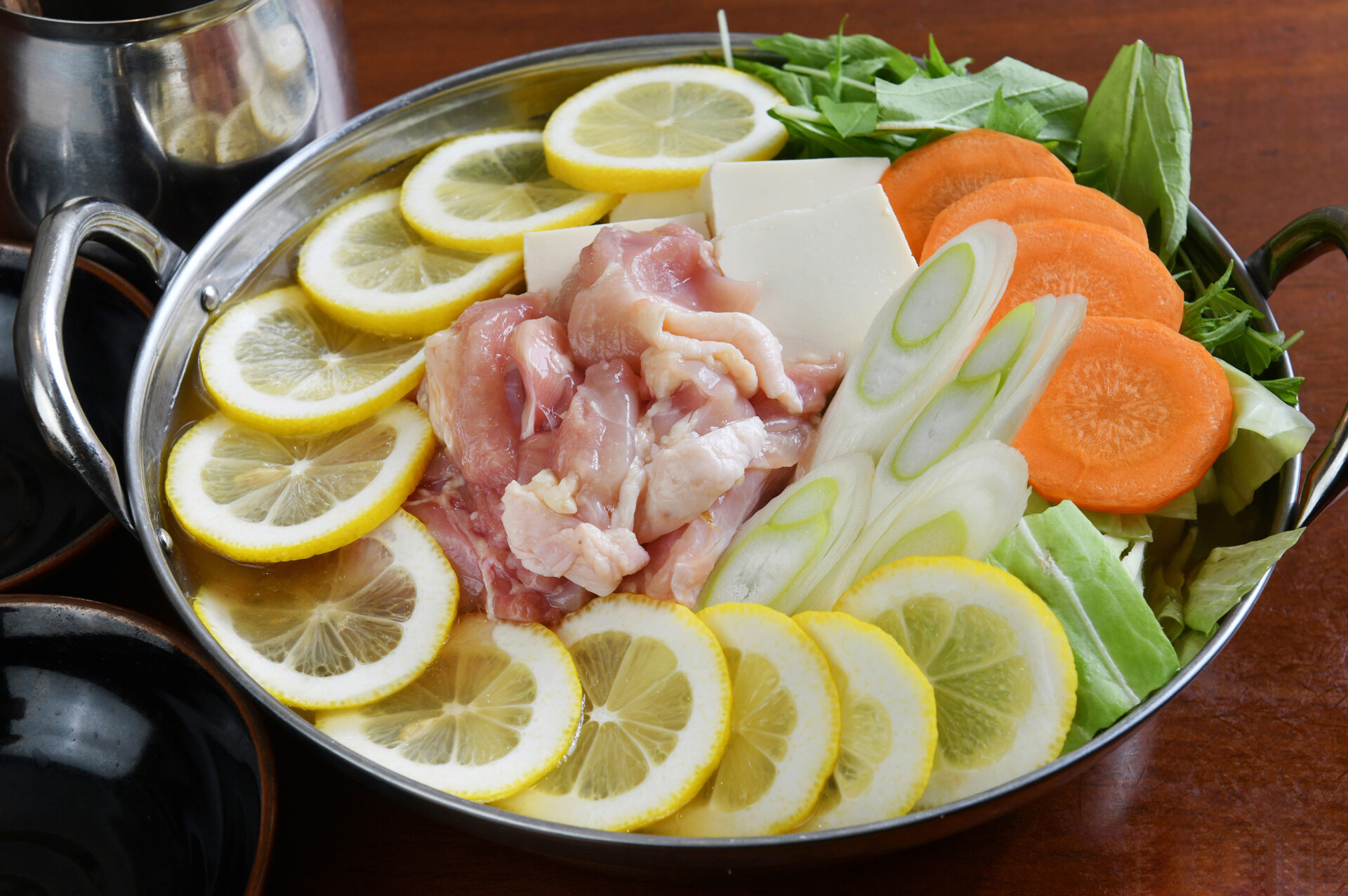 「さっぱりとしたスープをベースに生の柚子やレモンを乗せた、見た目も香りも楽しめる鍋」