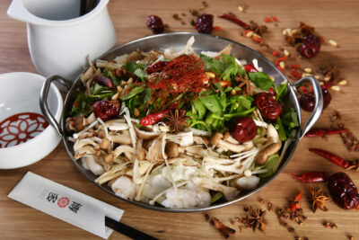 〈薬膳きのこもつ火鍋〉一人前2400円(注文は二人前から)