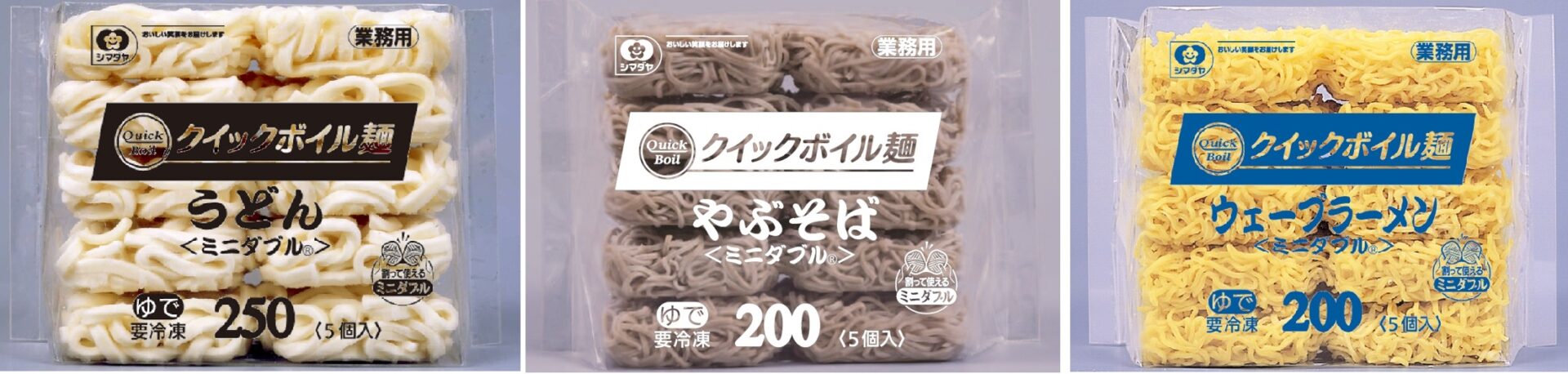 [冷凍]解凍時間半分にした「クイックボイル麺」ブランド立ち上げ! うどん・そば・ラーメンの3種発売【シマダヤ】
